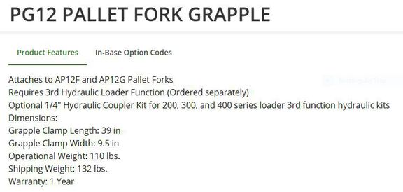 2020 Frontier PG12 pallet fork Grapple add on