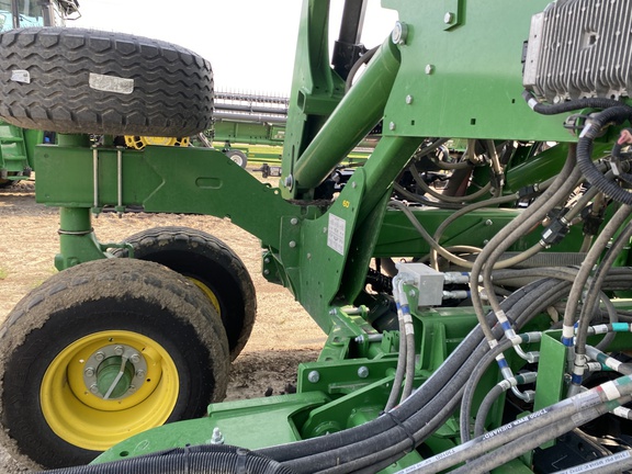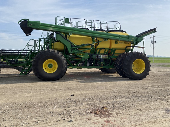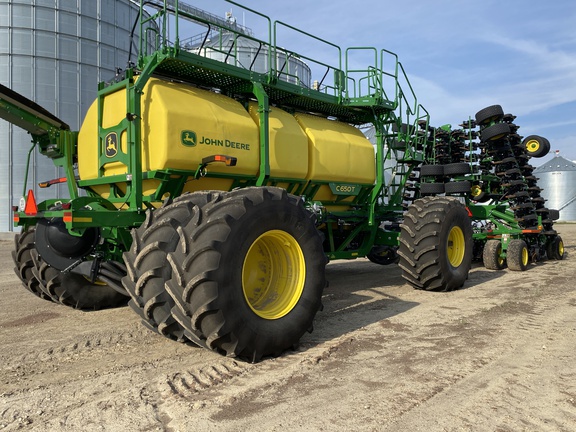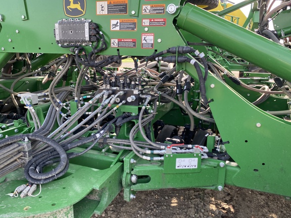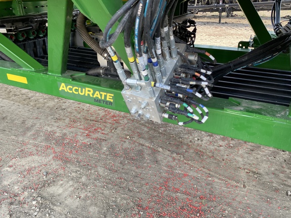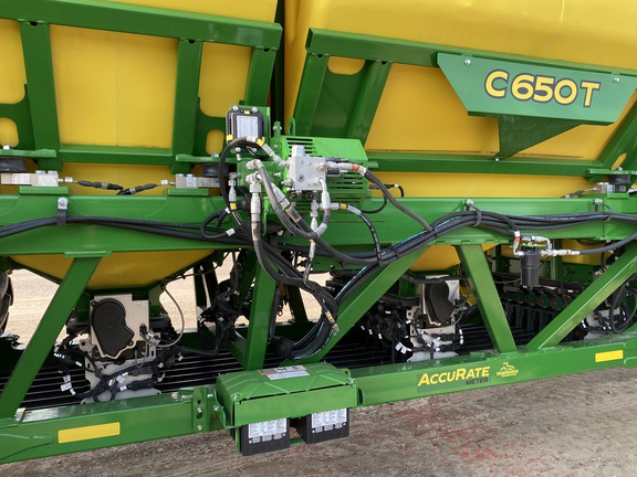 C650T tank 4 tank AccuRate electric meters with Section Command activations, 4 tank scales with Active Cal, 4 tank electric shutoffs, EZ Cal cartside calibration system, 12" high speed conveyor, high float tire package, premium lighting, 1 low rate meter, 4 high rate meters, cart side display. 60' N560 with 7.5"/15" dual rank spacing, serrated closing wheels, spoked gauge wheels, relative flow blockage, wings duals, spare tire. Very nice, low acres, latest tech!