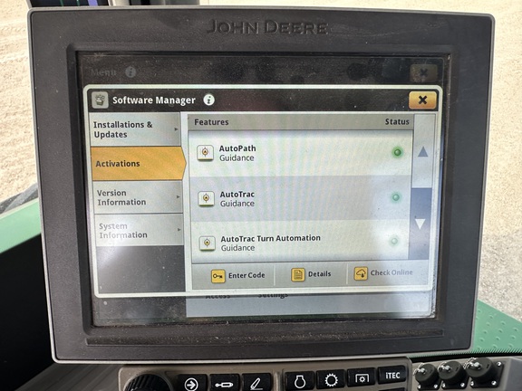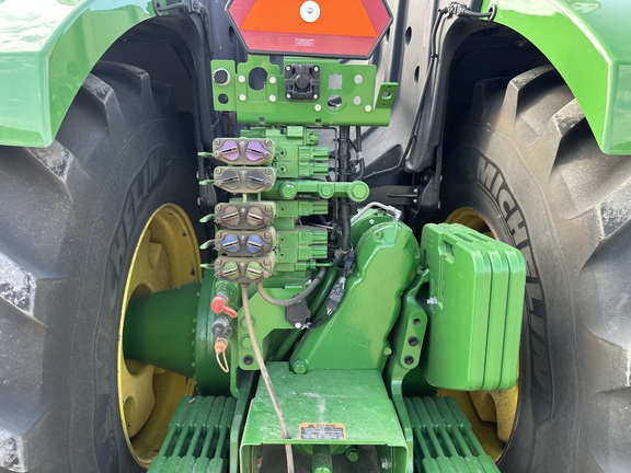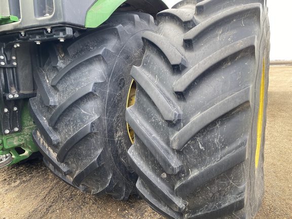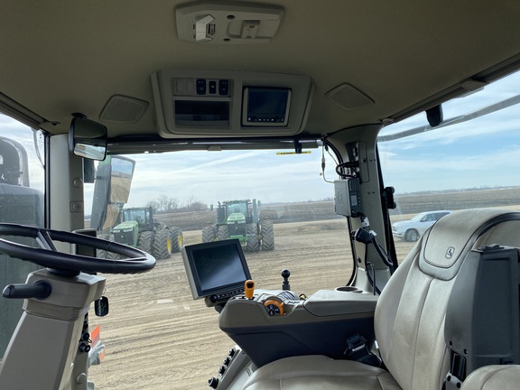 PowerGard Limited Engine / PowerTrain coverage until Sep of '26 or 2,000 hours. Deere Signature Series - The best Deere has to offer! Ultimate Visibility package with full LED lighting, Ultimate Comfort package with heated / cooled / massaging leather ActiveSeat2, 4600 Gen4 display with AutoMation 4.0 unlock, dual VF 800/70r38 tires, weight package, dual hyd pump 110 gpm high flow with 5 scv's and aux connections package, hydra cushion hyd front axle suspenstion for ride and traction to eliminate power hop, axle flats option, JDLink equipped, tow cable, cat 5 drawbar, 1000 PTO. JD14 engine with e18 PowerShift transmission. Loaded!