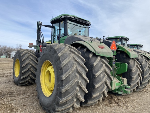 PowerGard Limited Engine / PowerTrain coverage until Sep of '26 or 2,000 hours. Deere Signature Series - The best Deere has to offer! Ultimate Visibility package with full LED lighting, Ultimate Comfort package with heated / cooled / massaging leather ActiveSeat2, 4600 Gen4 display with AutoMation 4.0 unlock, dual VF 800/70r38 tires, weight package, dual hyd pump 110 gpm high flow with 5 scv's and aux connections package, hydra cushion hyd front axle suspenstion for ride and traction to eliminate power hop, axle flats option, JDLink equipped, tow cable, cat 5 drawbar. JD14 engine with e18 PowerShift transmission. Loaded!