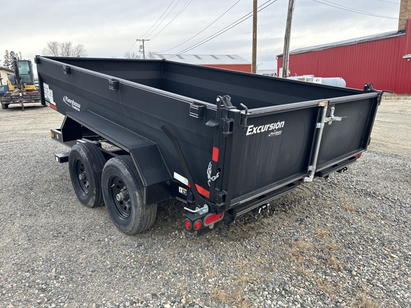 New Exursion 12' dump trailer. 5200lb axles, LED lights, Stoneguard protection, 2-way end gate, slide-in ramps. CALL FOR SPECIAL YEAR-END PRICING.