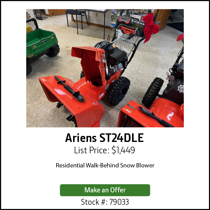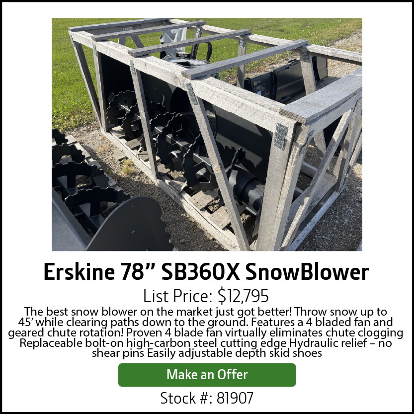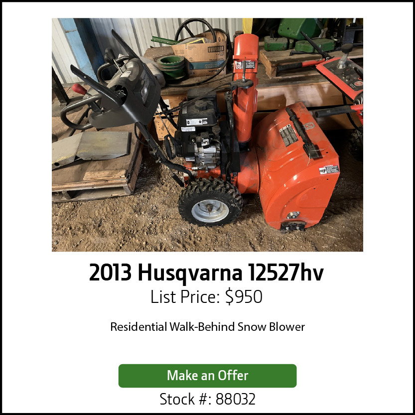Looking for snow removal equipment? Check out our inventory of everything to keep your yard clear of the snow- no matter the size! Snow pushers, snowblowers for mowers, compact utility tractors, skidsteers and more! Walk behind snowblowers are included as well. Prices listed, but call and make an offer!